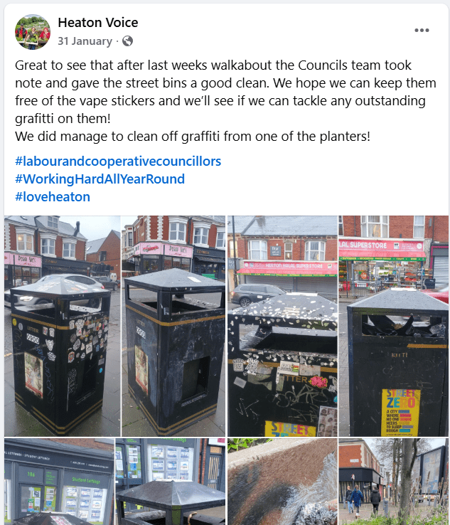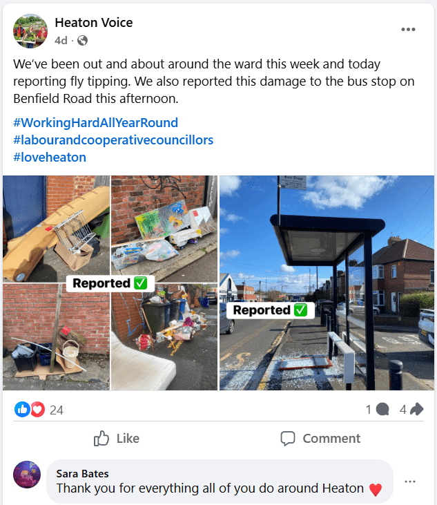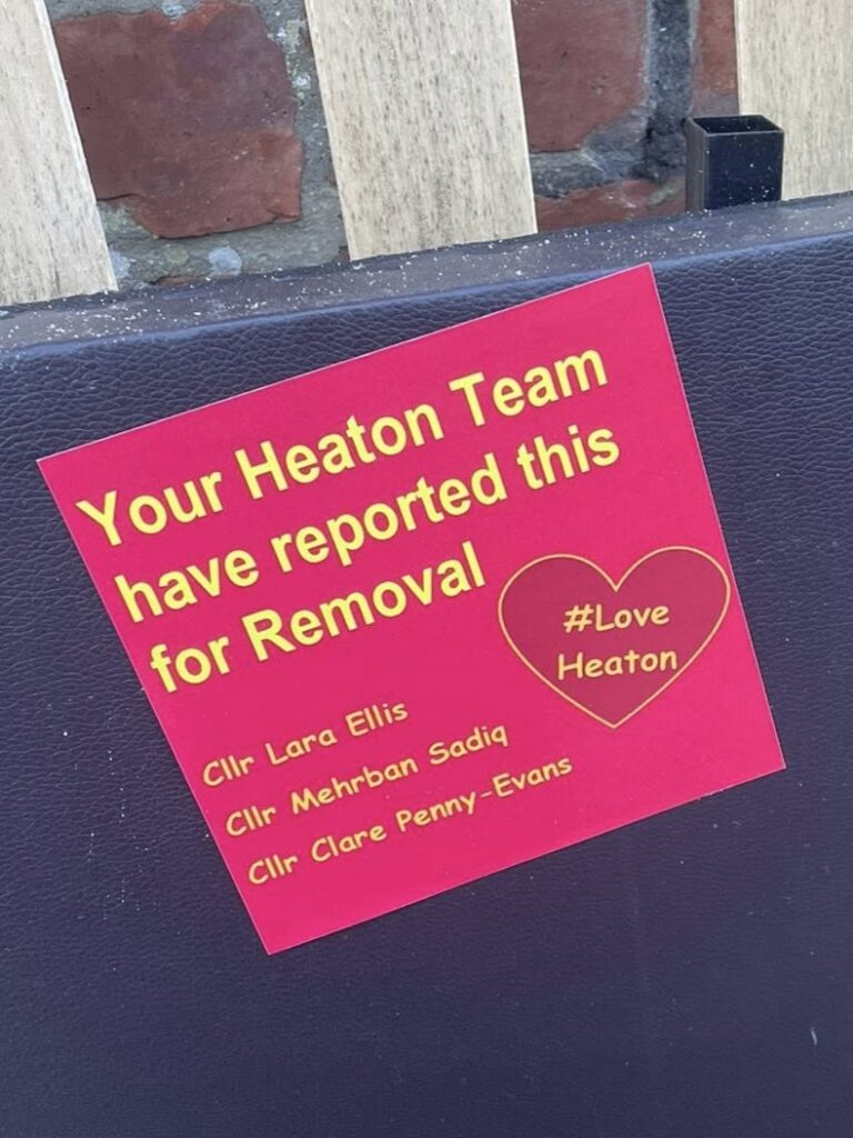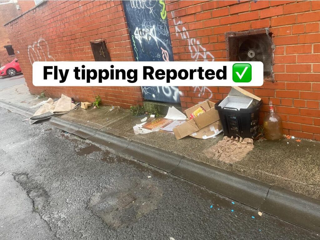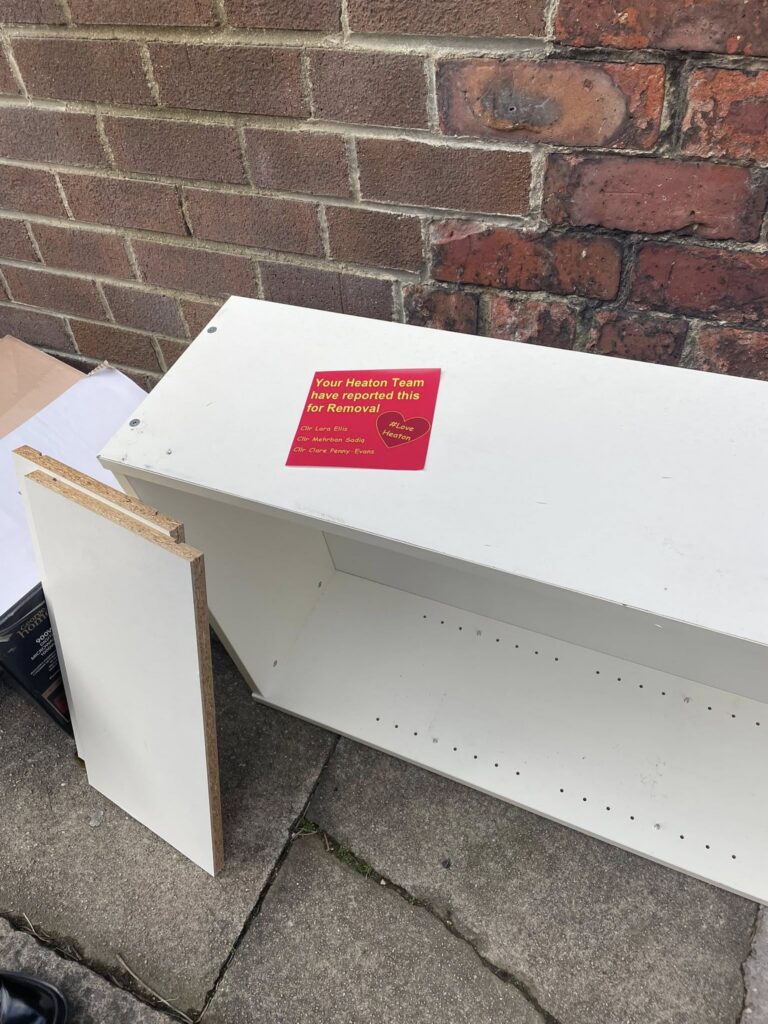 Lara, Mehrban and Clare have created these amazing stickers that they stick to fly-tipped rubbish they find in the back lanes. This ensures that residents know that their Labour councillors are aware of the issues and have done something about it.